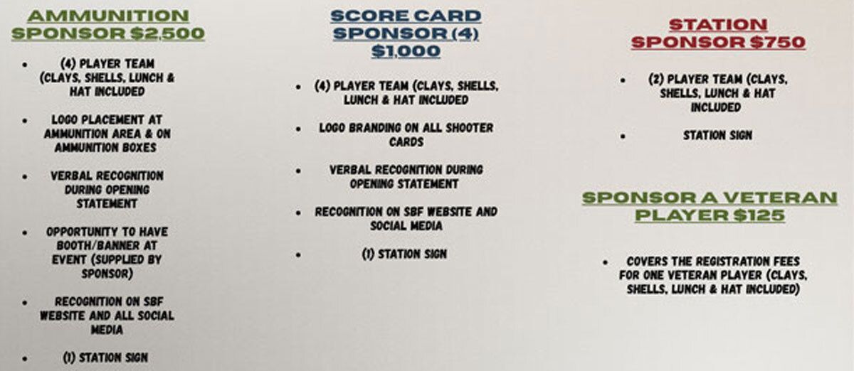 Select your sponsorship option below. If you prefer to mail a check payment, please contact our Development Manager at events@soldiersbestfriend.org.
